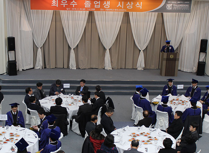 공대동창회장, 학장단 및 학부/학과장, 최우수졸업생 및 가족 등이 참석하여 수상을 축하하고 오찬을 함께 한다.